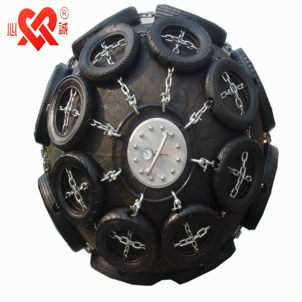 護(hù)套式充氣橡膠護(hù)舷(靠球)是“依據(jù)ISO17357(Net Type Pneumatic Fenders)開發(fā)生產(chǎn)的一種具有高強(qiáng)度、高耐磨性的護(hù)舷系統(tǒng)。尺寸為:D1.0m x L1.5 ~ D3.3m x L6.5m。其突出的外觀特點(diǎn)就是:充氣護(hù)舷的本體外由一張輪胎鏈條網(wǎng)包裹,從而延長了護(hù)舷本體的使用壽命。所使用輪胎全部經(jīng)過特殊處理,使表面美觀;其鏈條全部經(jīng)過熱鍍鋅處理。